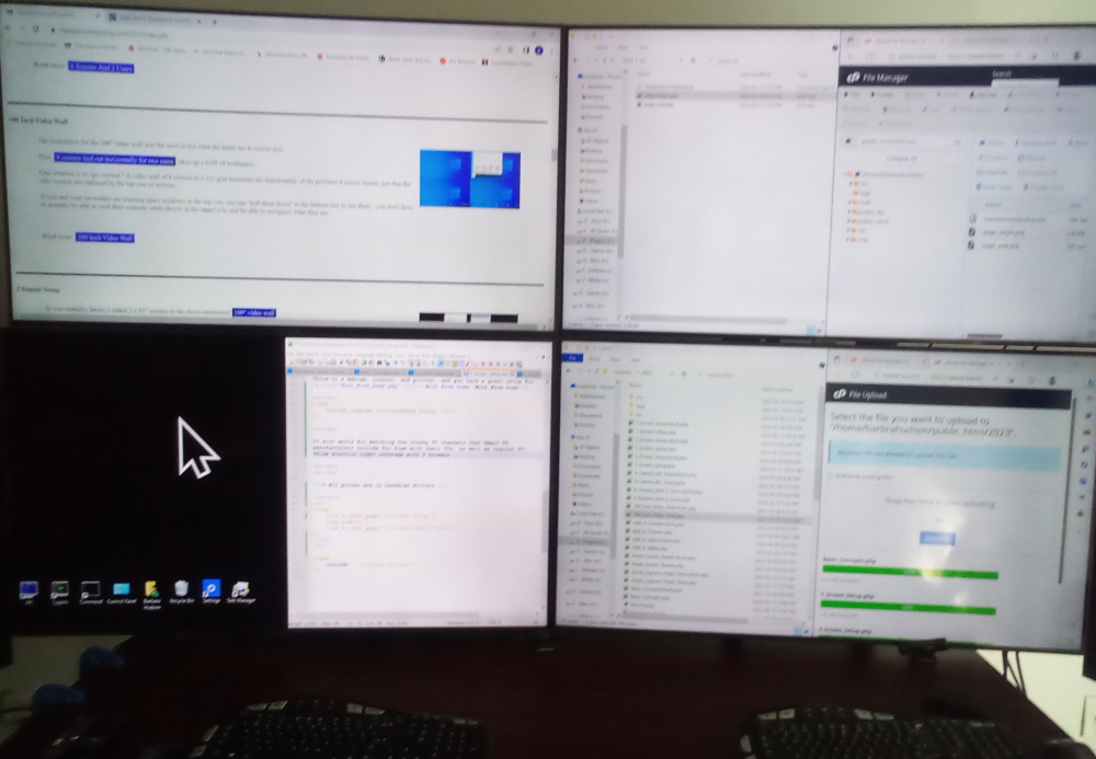 The 100" video wall was originally concieved and built to test what the maximum usable screen size is, by taking a screen shot from a single screen and either shrinking it down or stretching it across all 4 screens to imitate everything from a tablet to a 100" screen. It turns out that a 100" compound wall (as opposed to a single 100" screen) is VERY usable unless you have neck problems. |