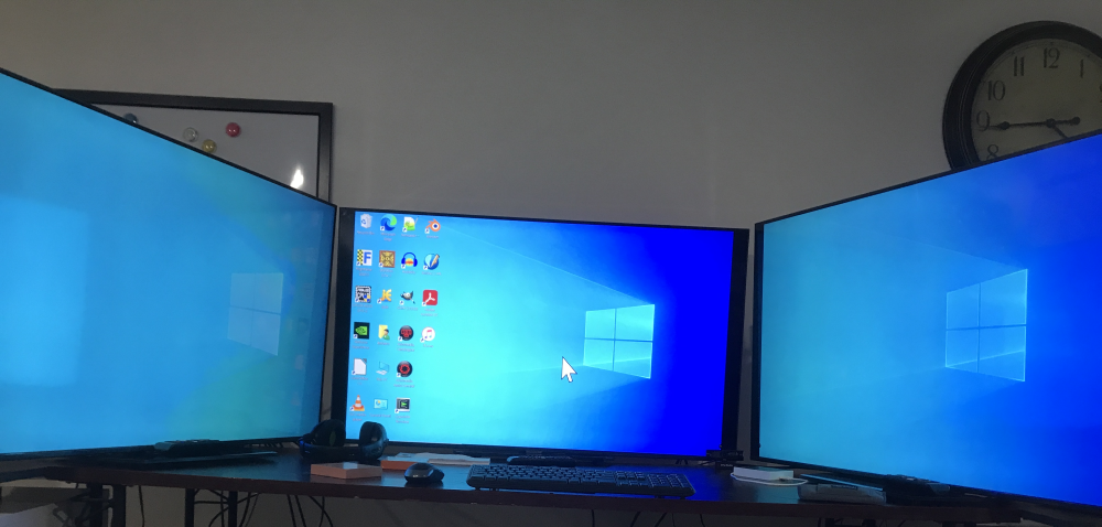 When the project evolved to having a 3rd screen, I nicknamed it "The Great Equalizer", because that's exactly what it is - it has such great workflow that people with low vision can compete on an equal footing with those who aren't visually handicapped and don't have a "Great Equalizer." Important For the various ways you can configure the screen upscaling and displayed text size independently for optimal readability, see the Operating System page. With a center screen, and additional screens on both sides, there's plenty of room to work, as well as to store windows on both side screens until needed. |