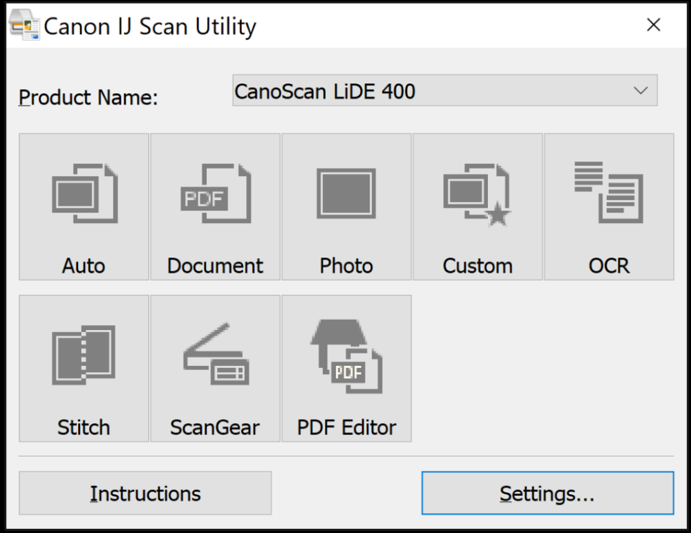 Unfortunately, the pictured scanner, a Canon LiDE